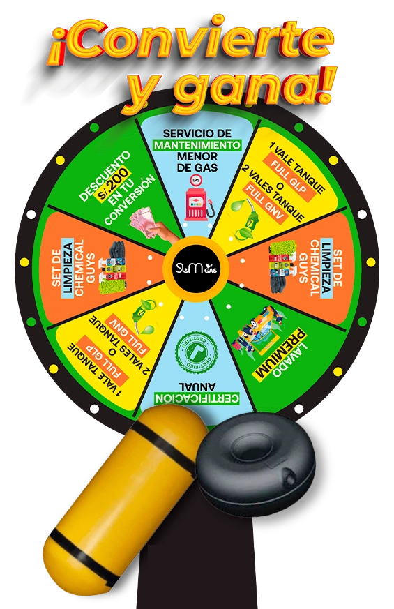 Por la conversión de tu auto a GNV o GLP puedes participar por uno de los premios de la ruleta ganadora !